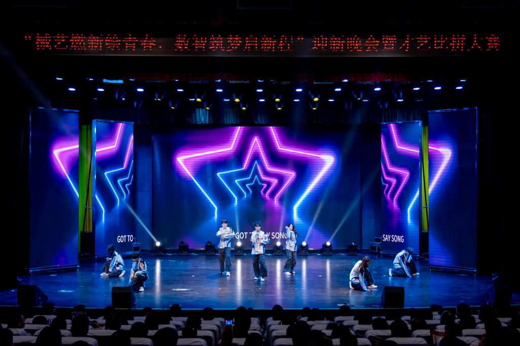 晚会在热烈的氛围中拉开帷幕,开场舞《go big or go home》伴随着动感音乐与绚丽灯光,舞者们以活力四射的舞姿点燃全场激情,充分展现出 2025 级新生的蓬勃朝气与青春风采,现场掌声与欢呼声此起彼伏。