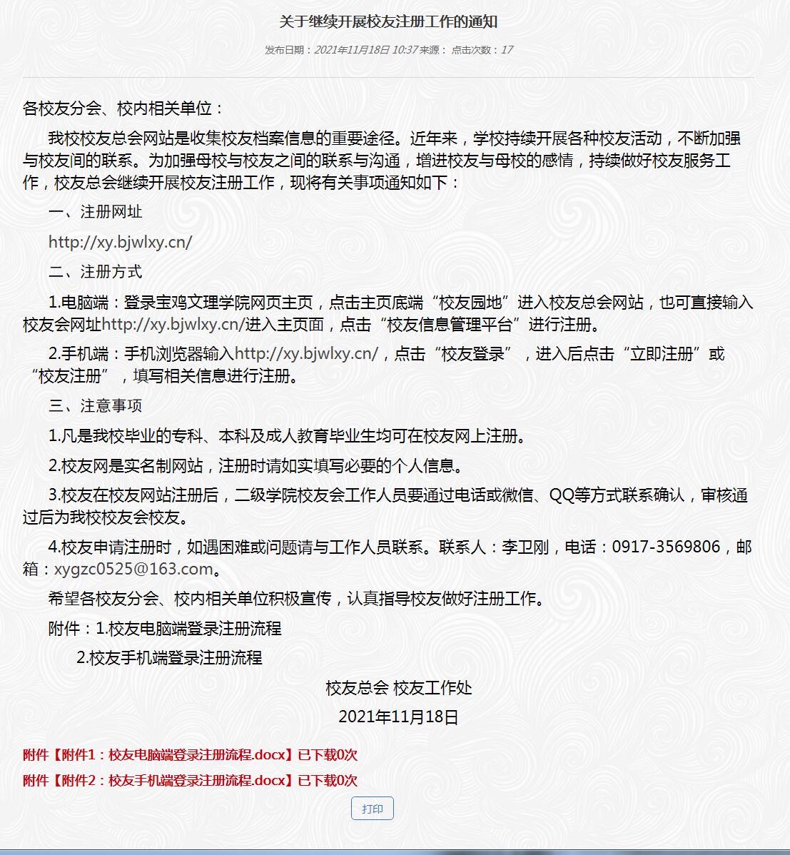 上一条:关于更新完善校友信息工作的通知